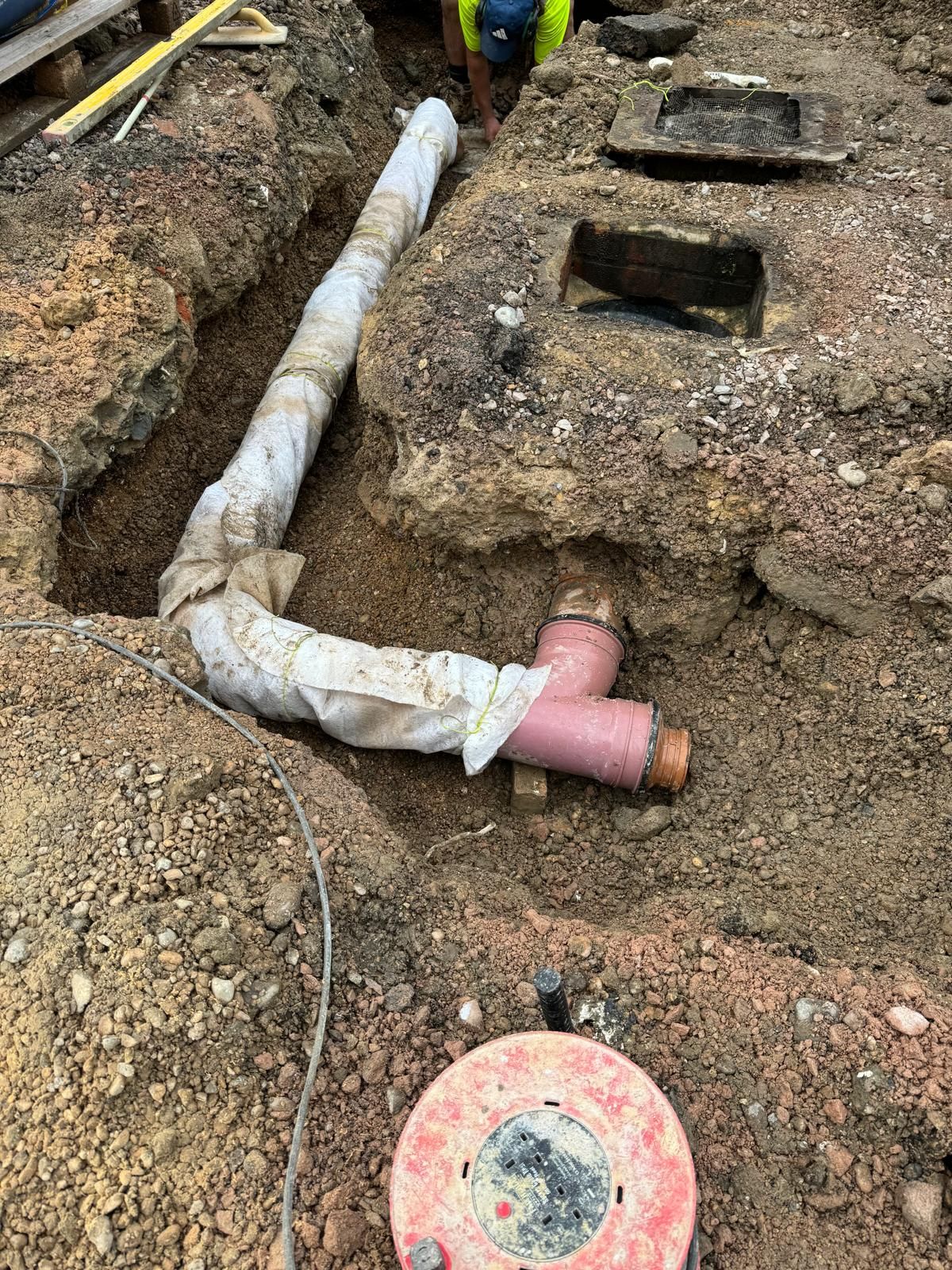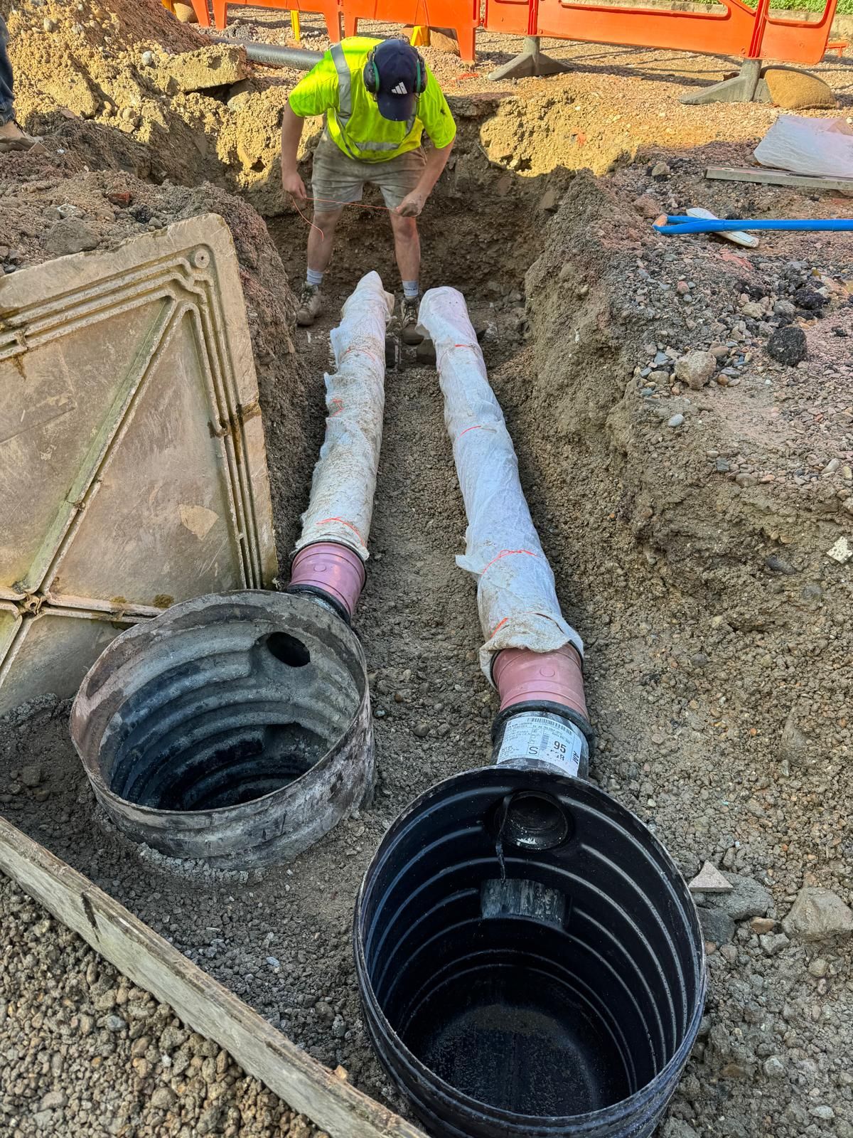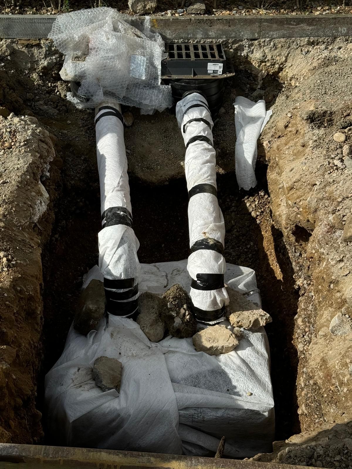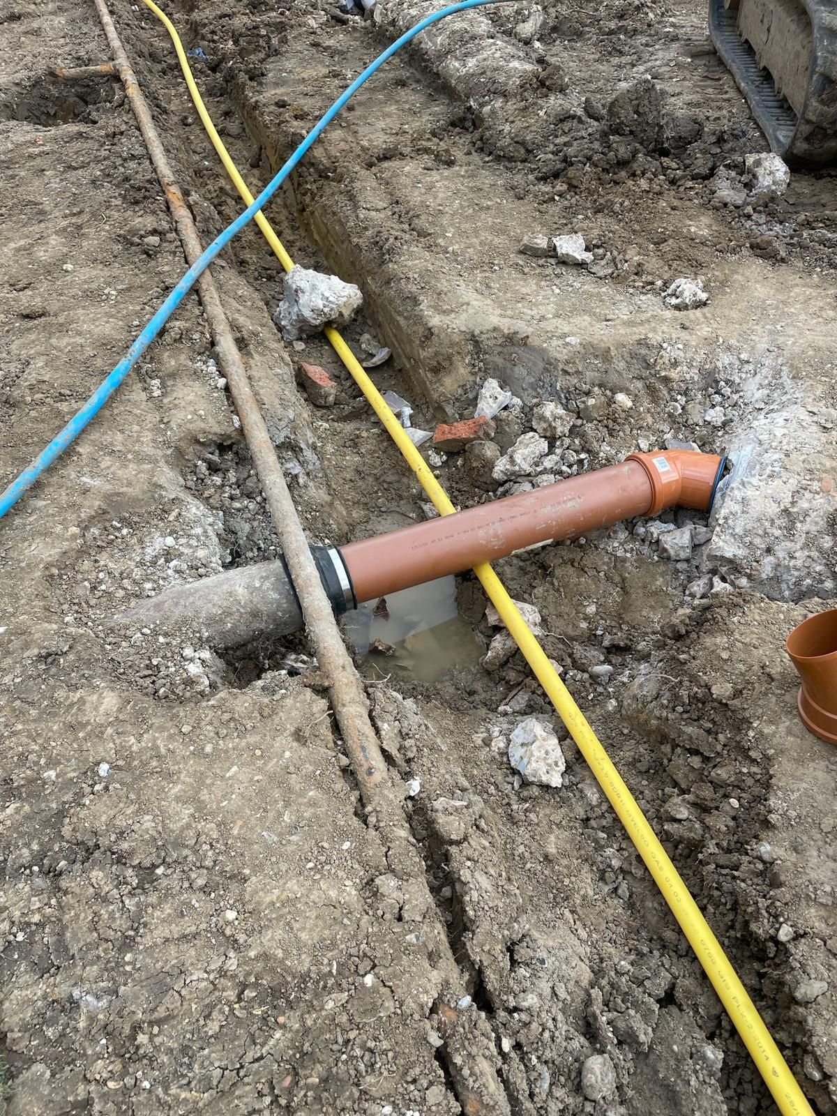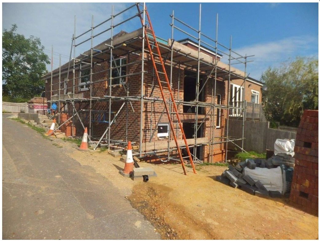 Photos of the 1200 square metre car park showing soakaways, road gully’s, channel dish drainage units, sub base and 60mm block paving and parking bays with visitor bays.