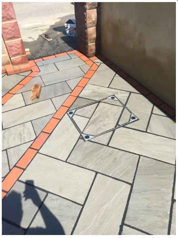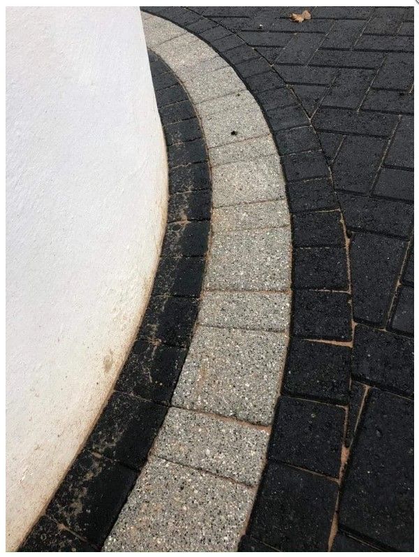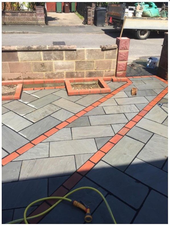 Burnt Ochre Trident pavers , new front wall , and new dropped curb.